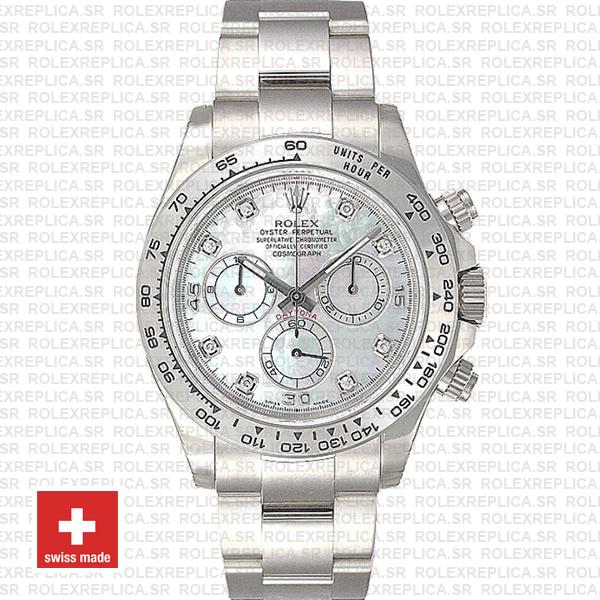 Rolex Cosmograph Daytona 18k White Gold 904L Steel White MOP Dial Diamond Markers 40mm Swiss Replica Watch