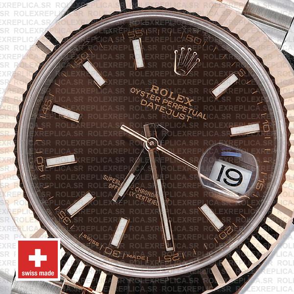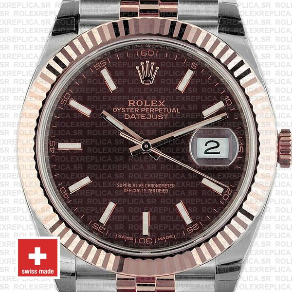 Rolex Datejust 41 Jubilee 2-tone 18k Rose Gold/904L Steel Fluted Bezel Chocolate Dial Stick Markers 41mm Swiss Replica Watch