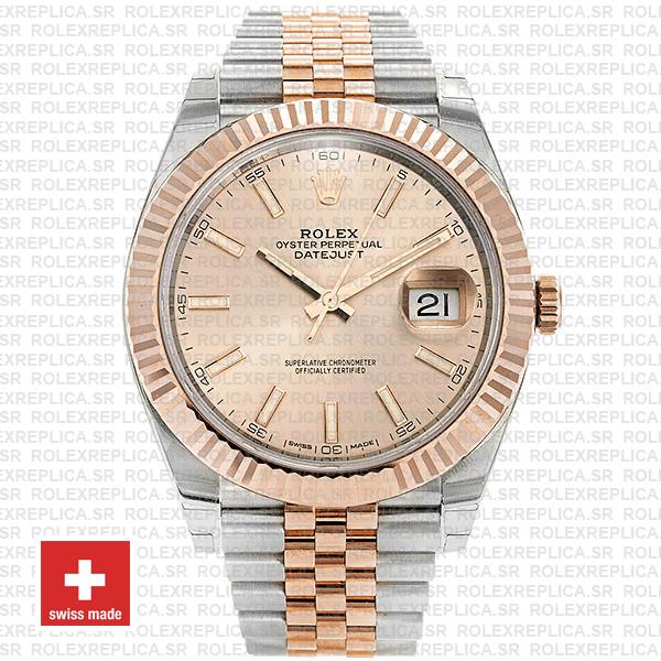 Rolex Datejust 41 Jubilee 2-tone 18k Rose Gold/904L Steel Fluted Bezel Pink Dial Stick Markers 41mm Swiss Replica Watch
