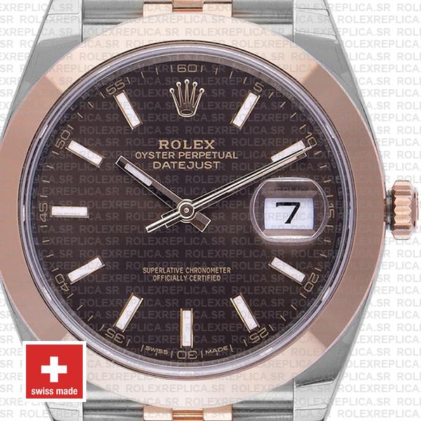 Rolex Datejust 41 Jubilee 2-tone 18k Rose Gold/904L Steel Smooth Bezel Chocolate Dial Stick Markers 41mm Swiss Replica Watch