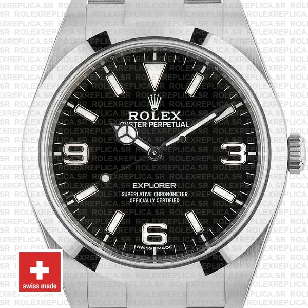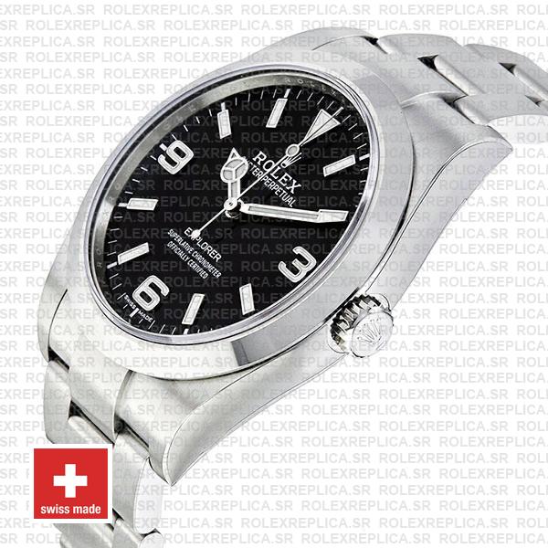Rolex Explorer I Black Dial 904L Steel 39mm Swiss Replica Watch